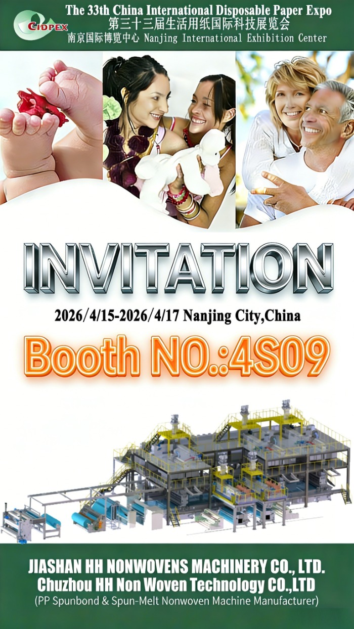 JIASHAN HH นอนวูฟเวนเครื่องจักร CO., LTD. และ Chuzhou HH Non Textile Technology CO., LTD มีความภูมิใจที่จะประกาศการมีส่วนร่วมของเราใน งานแสดงสินค้ากระดาษทิ้งนานาชาติแห่งประเทศจีนครั้งที่ 33 (CIDPEX 2026) เกิดขึ้นตั้งแต่ 15 ถึง 17 เมษายน 2026 ณ ศูนย์แสดงสินค้านานาชาตินานกิง เมืองหนานจิง สาธารณรัฐประชาชนจีน