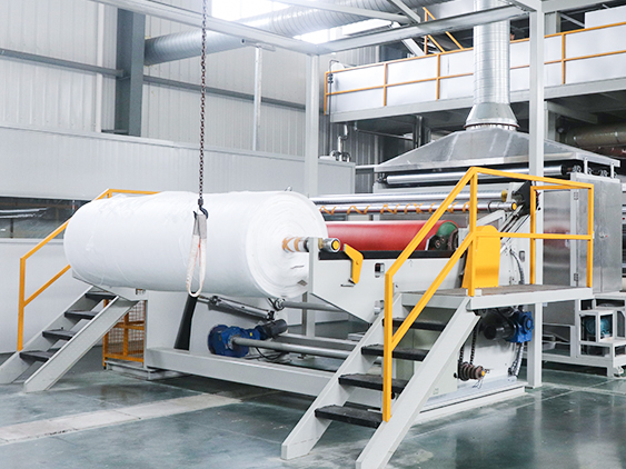 เครื่องนอนวูฟเวน PP สปันบอนด์ใช้ในการผลิตผ้านอนวูฟเวน pp สปันบอน ด้วยเครื่องสลิตเตอร์ในเครื่องของเรา สามารถตัดผ้าให้มีความกว้างเท่าใดก็ได้เพื่อให้พอดีกับความต้องการที่แตกต่างกัน ความเร็วในการทำงานของเครื่องคือ 10-350 เมตร/นาที เส้นใยปฏิเสธ: 1.8-2.3 ดีเนียร์