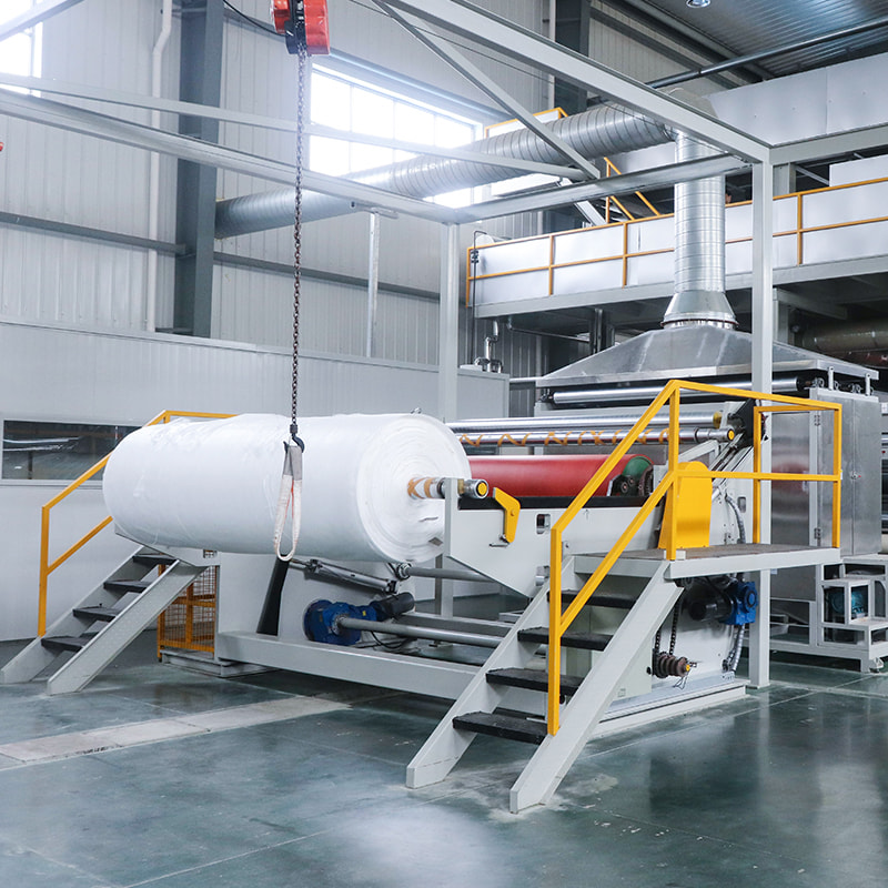 เครื่องนอนวูฟเวน PP สปันบอนด์ใช้ในการผลิตผ้านอนวูฟเวน pp สปันบอน ด้วยเครื่องสลิตเตอร์ในเครื่องของเรา สามารถตัดผ้าให้มีความกว้างเท่าใดก็ได้เพื่อให้พอดีกับความต้องการที่แตกต่างกัน ความเร็วในการทำงานของเครื่องคือ 10-350 เมตร/นาที เส้นใยปฏิเสธ: 1.8-2.3 ดีเนียร์