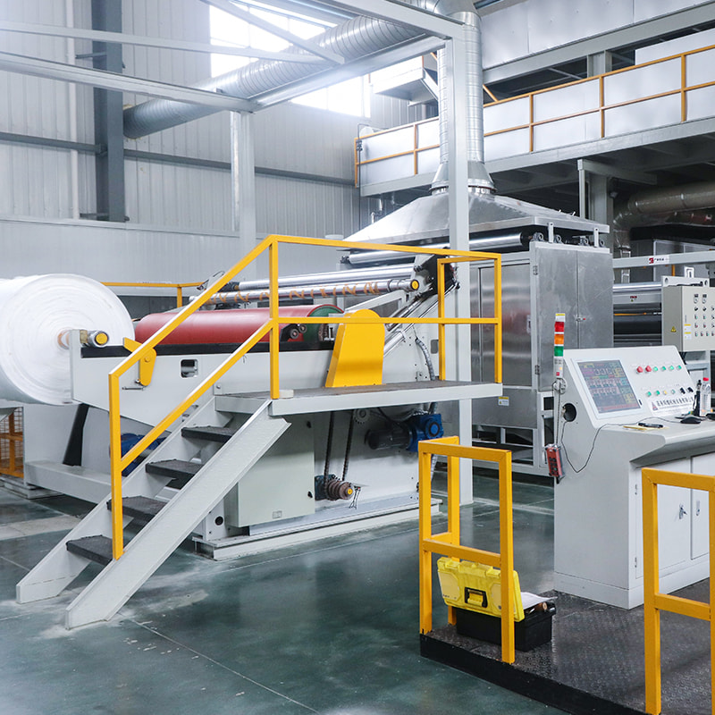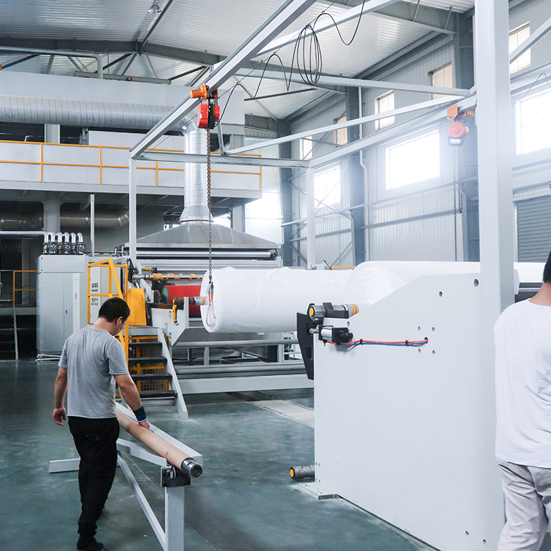 เครื่องนอนวูฟเวน PP สปันบอนด์ใช้ในการผลิตผ้านอนวูฟเวน pp สปันบอน ด้วยเครื่องสลิตเตอร์ในเครื่องของเรา สามารถตัดผ้าให้มีความกว้างเท่าใดก็ได้เพื่อให้พอดีกับความต้องการที่แตกต่างกัน ความเร็วในการทำงานของเครื่องคือ 10-350 เมตร/นาที เส้นใยปฏิเสธ: 1.8-2.3 ดีเนียร์